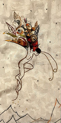 Angelika Achinger entwirft und näht große künstlerische Decken aus überwiegend alten Stoffen, gesammelt in zwei schweren, schwarzen Schränken. Unterschiedlichste Gewebe werden – mit selbst entworfenen farbenprächtigen Stickereien – behutsam neu arrangiert. Die bildhaften Objekte werden – mit passenden Stoffen hinterfüttert – zu großzügigen, leichten, anschmiegsamen Decken. Für Bett, Sofa oder Wand – jede ist unwiederholbar.
